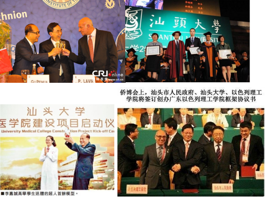 筹建了4年,今天,广东以色列理工学院在汕头举办启动仪式。李嘉诚、以色列前总统西蒙·佩雷斯出席仪式,还有100多位来自中以两国的政要、学者、企业家云集汕头。这所学校是以色列理工学院与广东省以及汕头大学的联姻。以色列理工学院是世界闻名高校,是全世界诺贝尔科学奖得主很多的大学之一。此前,李嘉诚基金会向以色列理工学院捐资1.3亿美元,广东拨款9亿元及620多亩土地促成了这桩“联姻”,下面我们来一睹这学习的风貌。