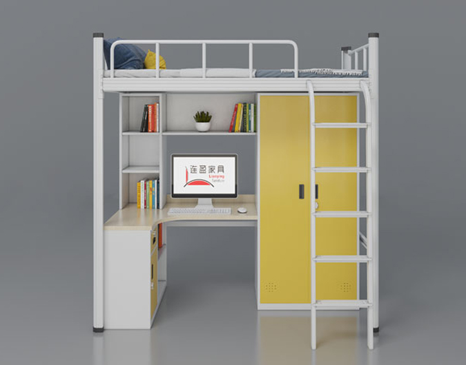 员工宿舍公寓床又称组合床,由床、书桌、储物柜三者组合而成,上方的床用来睡觉,而下方的书桌用来学习和娱乐,储物柜让凌乱的小物品和衣物有了“容身之所”。