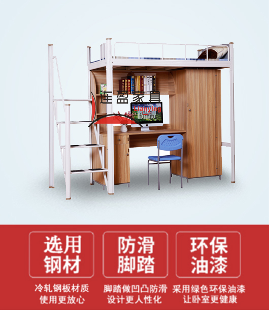 本公司的佛山钢木公寓床能够充分利用空间,因为上床下桌的形式比较节省占地面积。连盈家具产品总能以美观、舒适、安稳的标签呈现在公寓床市场中,一般来说,我们的床适用于长期发展的企业宿舍及学校宿舍。连盈家具的产品皆可定制批发,颜色缤纷多样,尺寸任选,安全不缺美感,一起来了解连盈家具的不同风采吧!